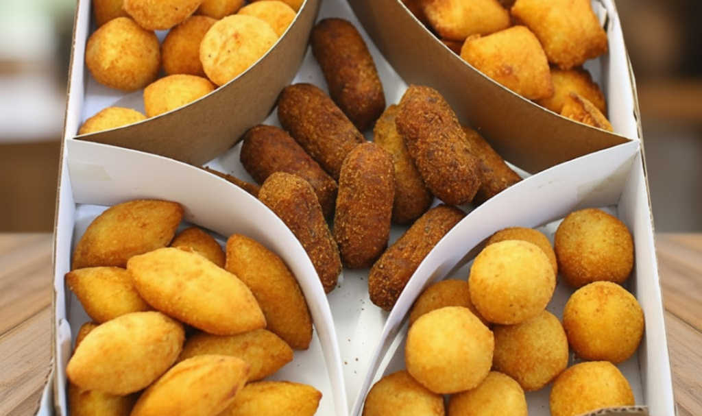 Na Kituteria, o kit festa pronto para servir é feito com ingredientes selecionados e receitas artesanais que garantem o sabor caseiro que todo mundo ama. As opções incluem coxinhas, quibes, bolinhas de queijo, empadinhas e mini pastéis, tudo na medida certa para cada tipo de evento, seja um aniversário, casamento, confraternização ou festa infantil.